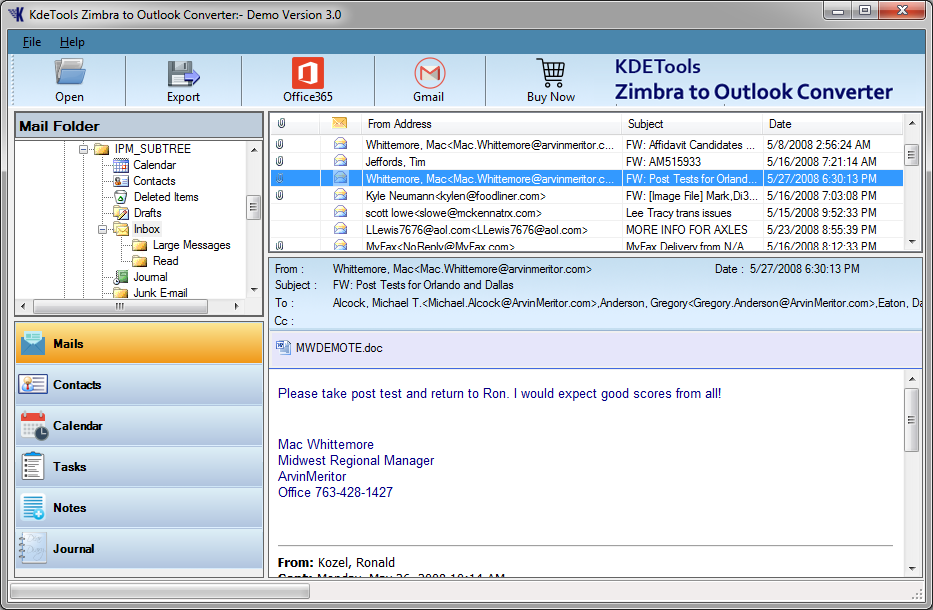 Zimbra Converter is an instant and a safe method to export Zimbra to Exchange Server. Use the robust and advanced tool to perform successful conversion of data directly. The software enables the users to export to more than 15 file-formats including PST, NSF, HTML, PDF, MSG, EML, OLM, MBOX, Exchange Server, Gmail, and etc. The user can use the free demo version and export up to 30 items for free and check the software efficiency and fast conversion rate. The software has a wide range of series of advanced features such as 'Batch Conversion', 'Message Filtering', 'Selective File', and supports multiple file formats.
