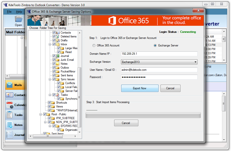Steps to Export Zimbra to Exchange Server by Using Zimbra to Exchange Server Converter