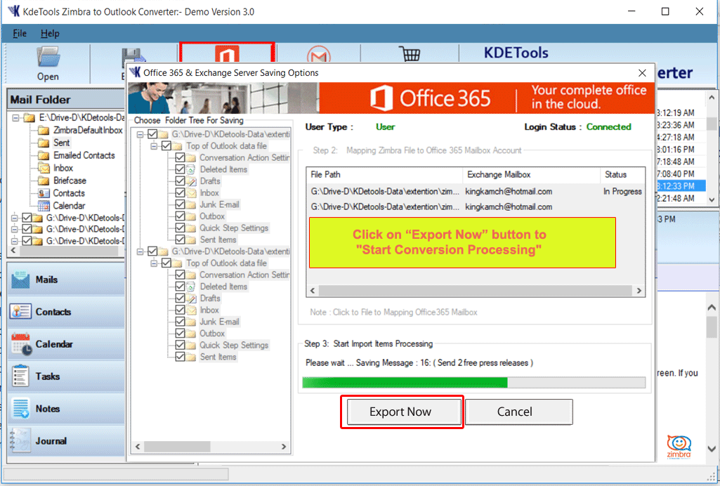 Step 5: Click on the 'Export Now' Button to Start Conversion process.