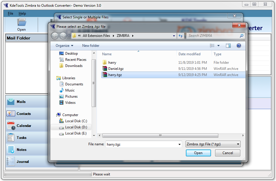 Step 3: Now, pick the Zimbra TGZ file that you wish to migrate.